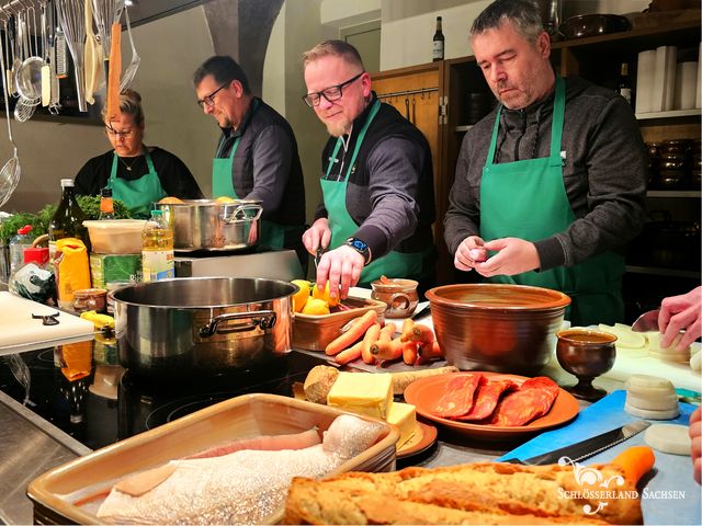 Kochen Sie gemeinsam mit Freunden, der Familie oder Ihren Kollegen ein köstliches Menü bei einem geselligen Kochabend. In der gemütlich-rustikalen Gesindeküche der Schlossanlage gibt es dazu noch Tipps und Tricks rund um saisonale Gerichte von unseren Schlossköchen.